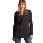 Crafted from high-quality materials, the blazer features a sleek, smooth finish that exudes refinement. The double-breasted design is both timeless and contemporary, offering a versatile appeal that suits a range of occasions. With its carefully positioned buttons, the blazer creates a flattering, cinched-in effect at the waist, enhancing the wearer’s natural shape.