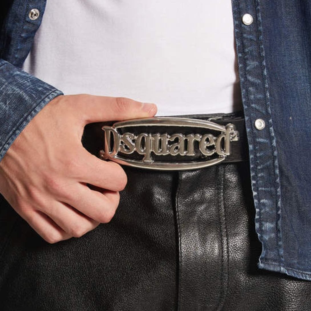 The DSQUARED2 Plaque Belt is a luxurious and stylish accessory that embodies the essence of contemporary fashion with a blend of classic elements. Crafted by the renowned Canadian design duo Dean and Dan Caten, this belt stands out as a statement piece suitable for various occasions, from casual to formal.