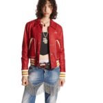 The DSQUARED2 Signature Varsity Leather Bomber is a timeless icon of urban style and luxury craftsmanship. Crafted with meticulous attention to detail, this bomber jacket epitomizes the brand’s fusion of classic American collegiate aesthetics with Italian tailoring expertise.