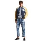 The standout feature of the Dsquared2 Street College Bomber lies in its intricate embellishments and bold branding. Inspired by collegiate motifs, the jacket often features vibrant patches, embroidered logos, and contrasting stripes reminiscent of varsity jackets. These elements inject a youthful energy and playful charisma into the garment, elevating it beyond mere outerwear to a symbol of self-expression and individuality.