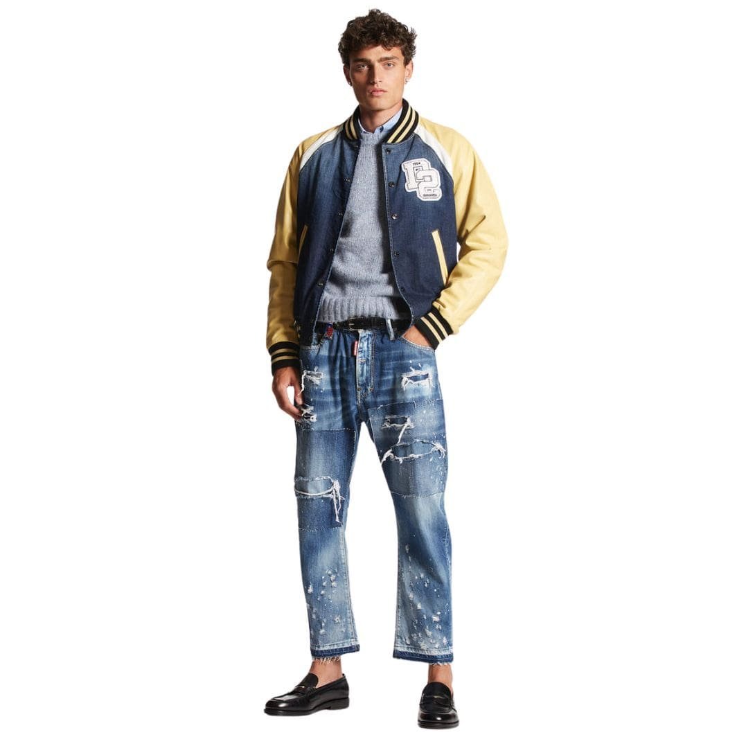 In essence, the Dsquared2 Street College Bomber epitomizes modern streetwear luxury, offering a contemporary reinterpretation of a timeless classic. With its impeccable craftsmanship, attention-grabbing details, and effortless versatility, it stands as a must-have piece for fashion-forward individuals seeking to make a bold statement with their wardrobe.