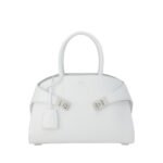 Adding a subtle touch of refinement is the tonal leather fob adorning the rigid top handle, a subtle yet significant detail that speaks volumes about the bag’s impeccable design and luxurious appeal. Furthermore, the presence of rectangular foot studs not only enhances the bag’s aesthetic allure but also provides practical protection, ensuring that the Hug bag remains as iconic as ever.