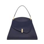 At the heart of its design lies an innovative juxtaposition of elements. The distinctive asymmetrical front flap infuses a sense of dynamic movement into the otherwise structured silhouette, creating a captivating visual narrative that speaks to the brand’s innovative spirit. Crafted from supple calfskin boasting a semi-glossy finish, the bag exudes a luxurious allure, inviting admiration with every glance.