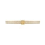 Crafted from a blend of premium materials, including 74% cotton, 13% acrylic, 7% polyurethane, and 6% other fibre, the coated canvas offers durability and resilience, ensuring long-lasting wear. The contrasting smooth leather lining adds a luxurious touch to the belt’s interior, providing comfort and elegance with every wear. The metal parts, composed of 100% brass, further enhance the belt’s durability and luxurious appeal.