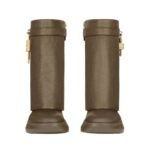 The design is anchored by an asymmetrical strap and lock closure system—a signature feature that defines the Shark Lock collection. This bold locking mechanism not only ensures a secure fit but also serves as a striking design element, enhancing the boots’ edgy, modern appeal. The strap wraps around the ankle, creating a snug fit while the lock detail adds an element of industrial chic.