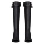 The Givenchy Shark Lock Stiletto Sandal Boots in leather are a striking fusion of elegance and bold design, perfect for the modern fashionista. Crafted from premium leather, these sandals feature a sleek silhouette that effortlessly elongates the legs, accentuated by a daring stiletto heel that reaches a stunning height. The distinctive shark lock detail, a hallmark of Givenchy’s innovative approach, adds a touch of edgy sophistication, making these boots a statement piece for any wardrobe.