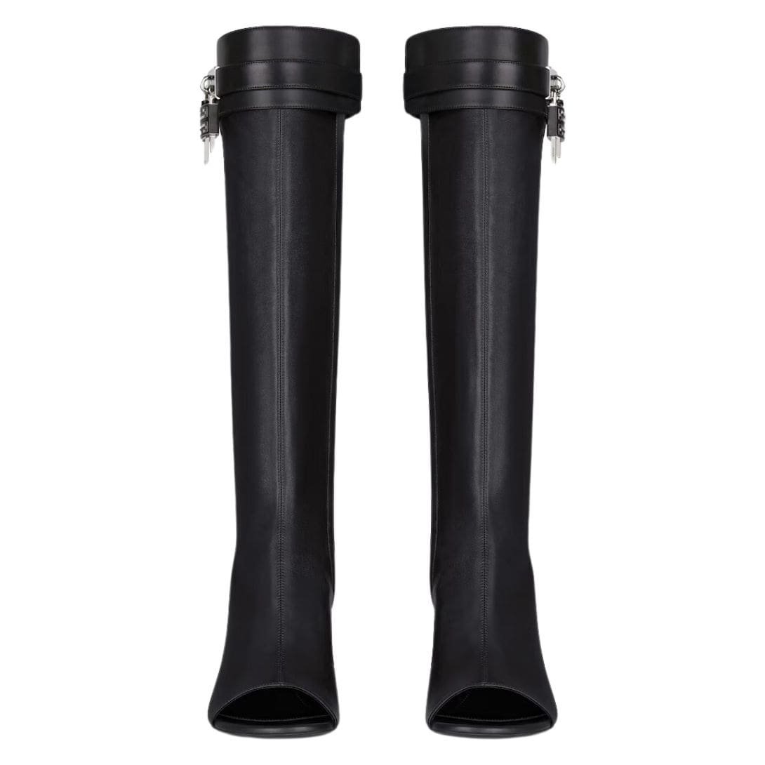 GIVENCHY SHARK LOCK STILETTO SANDAL BOOTS IN LEATHER