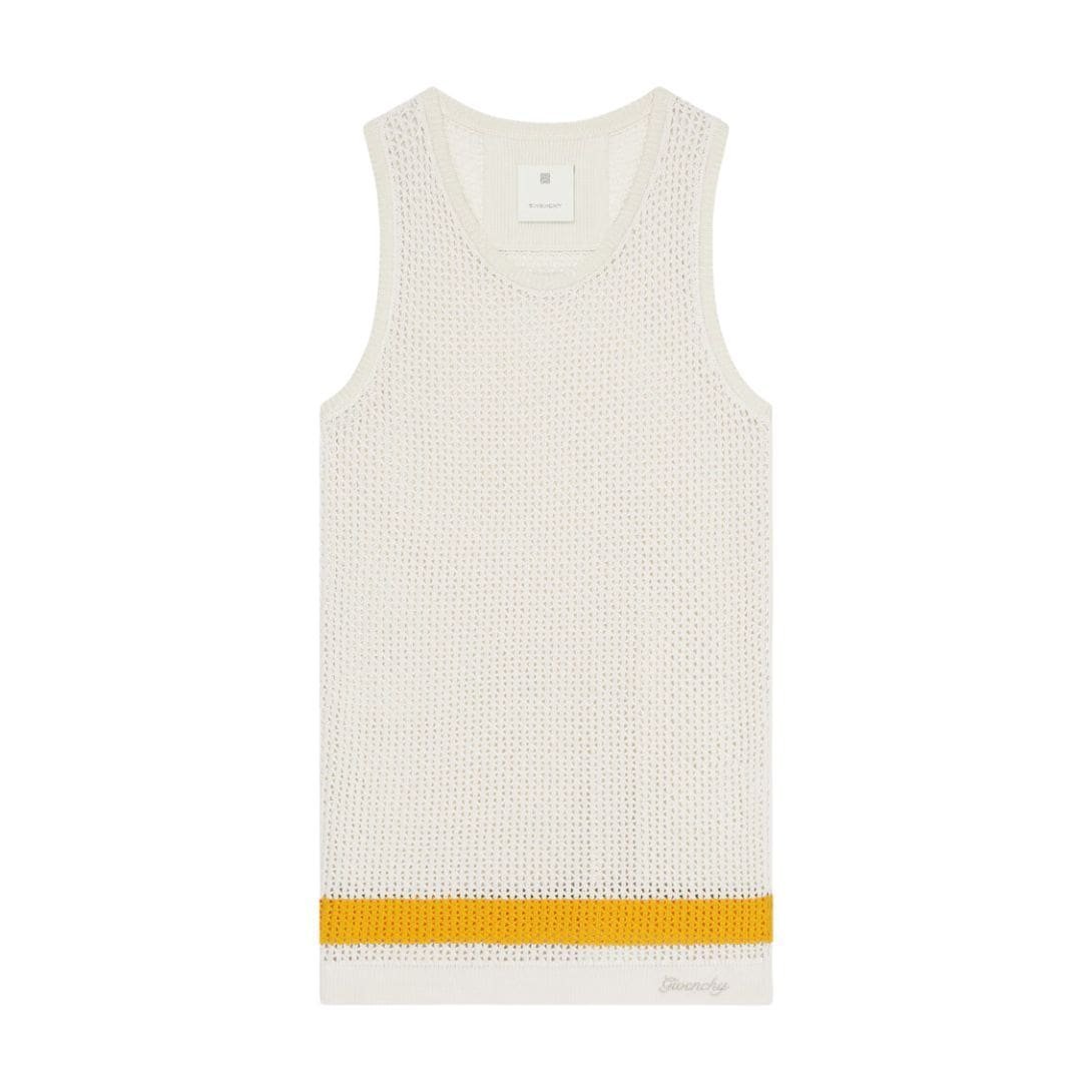 In terms of color palette, Givenchy offers the crochet tank top in a range of sophisticated hues, from classic neutrals like ivory and black to soft pastels and bold, vibrant shades. This variety allows for effortless pairing with different styles and colors, making it a versatile addition to any fashion-forward wardrobe.