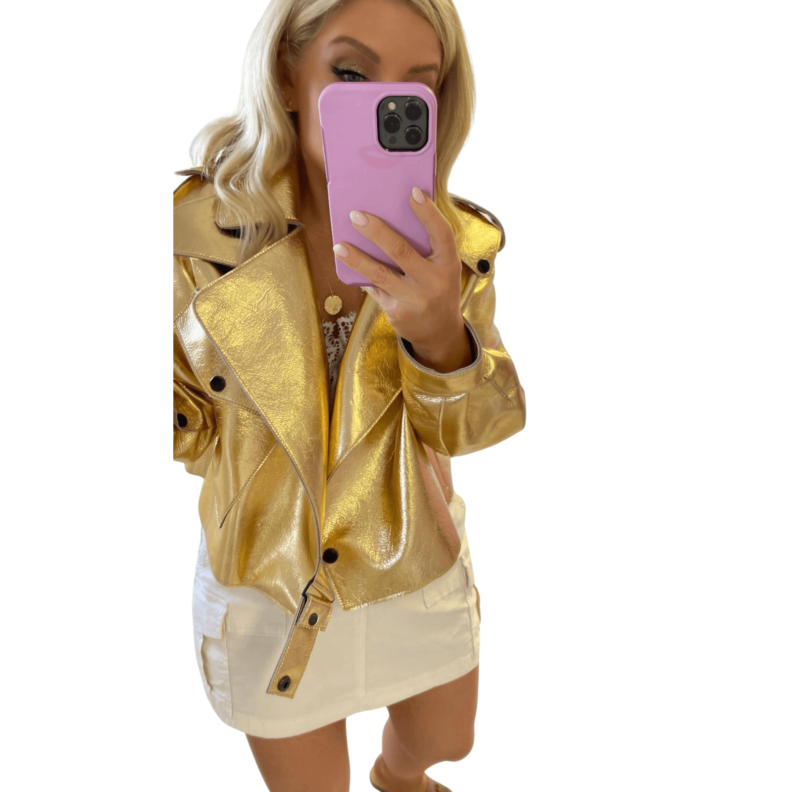 Gold Leather Jacket Women