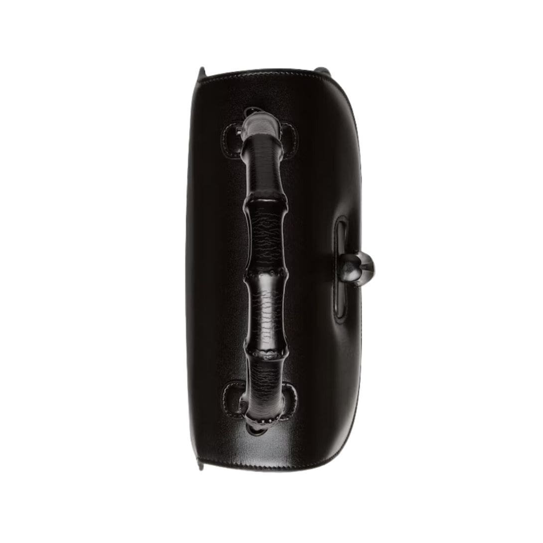 Crafted from supple, high-quality leather, the bag features a rich, textured surface that exudes understated opulence. The medium size strikes a perfect balance, offering ample space for daily essentials without sacrificing style. Its distinctive top handle, made from bamboo, pays homage to the bag’s original design while adding a unique, organic touch. The bamboo handle, known for its durability and flexibility, is meticulously crafted to achieve a smooth, polished finish that enhances the bag’s refined aesthetic.