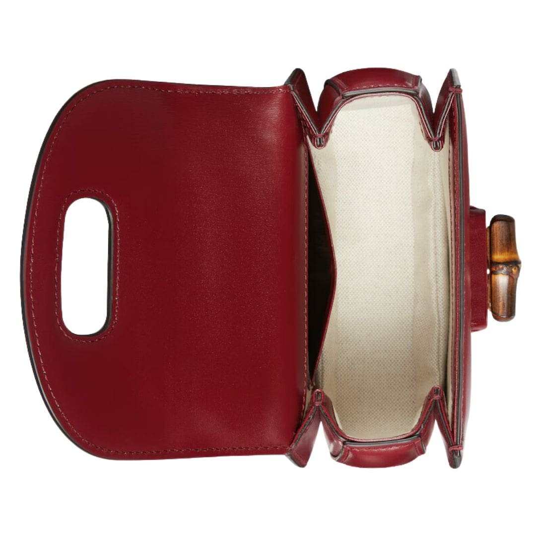 The mini size of the bag makes it perfect for those who appreciate compact elegance. Despite its small dimensions, it features a well-organized interior with enough space to accommodate your essentials. The bag’s interior is lined with luxurious fabric, enhancing its opulence and providing a refined touch. The closure is secured with a flap and a magnetic snap, ensuring your belongings are safe while adding to the bag’s streamlined appearance. GUCCI BAMBOO 1947 MINI BAG