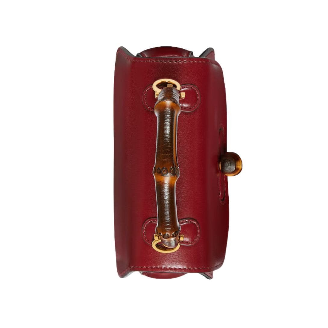 The bag features a structured silhouette that embodies both sophistication and versatility. It is made from premium leather, which offers a luxurious feel and durability. The standout element of this bag is its iconic bamboo handle, a signature of Gucci’s design history. The handle is meticulously crafted from hand-carved bamboo, adding a touch of classic charm and an eco-conscious element to the design. This handle, combined with a sleek leather strap, provides multiple carrying options, allowing the bag to be worn as a top handle or crossbody, adapting to different styles and occasions. GUCCI BAMBOO 1947 MINI BAG