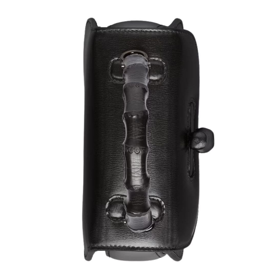Crafted from supple, high-quality leather, this mini bag features a sleek, structured silhouette that exudes refined elegance. The standout feature is its distinctive bamboo handle, a nod to Gucci’s rich history. This handle is meticulously crafted from sustainable bamboo, showcasing the brand’s commitment to eco-friendly practices while adding a unique touch of natural beauty to the design.