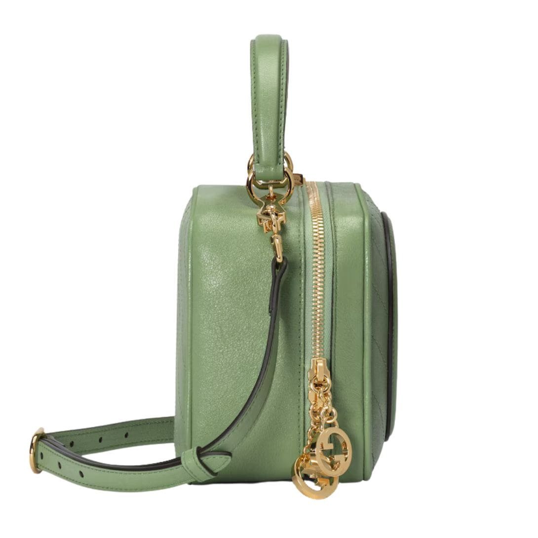 The front of the bag is adorned with the iconic interlocking GG logo, a symbol of Gucci’s storied legacy and commitment to exquisite craftsmanship. This emblem is beautifully set against the bag’s smooth leather surface, creating a harmonious contrast that catches the eye. The bag is available in a variety of colors, from classic black and white to bold hues like red and green, catering to different tastes and styles. GUCCI BLONDIE TOP HANDLE BAG