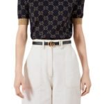 Accentuating this belt’s allure is the aged gold-toned hardware, including the signature Double G buckle, a hallmark of our commitment to exquisite detailing and heritage-inspired design. This emblematic adornment serves as a testament to the enduring legacy of the GG Marmont collection, elevating this accessory to a coveted symbol of luxury and refinement.