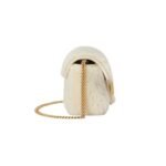 Despite its petite size, the bag is designed with practicality in mind. It features a flap closure that opens to reveal a surprisingly spacious interior for its dimensions, lined with suede-like microfiber. This interior can accommodate essentials such as a phone, keys, cards, and a small wallet, making it perfect for both day and evening use.