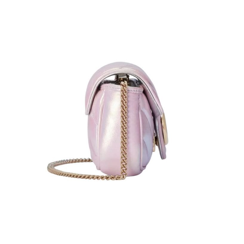 The Gucci GG Marmont Super Mini Bag is a timeless icon of luxury and sophistication, encapsulating the brand’s storied heritage in a compact, stylish form. Crafted from high-quality matelassé chevron leather, this bag boasts a textured, quilted finish that adds depth and a tactile element to its sleek design. The leather is supple yet durable, ensuring the bag maintains its elegance over time.  GUCCI GG MARMONT SUPER MINI BAG