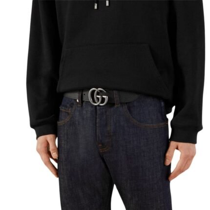 Crafted from sumptuous black leather, this belt epitomizes sophistication, while its gleaming gold-toned hardware adds a touch of opulence to any ensemble. The hallmark Double G buckle, a symbol of our heritage and exquisite design, graces the belt, infusing it with an air of luxury and refinement.