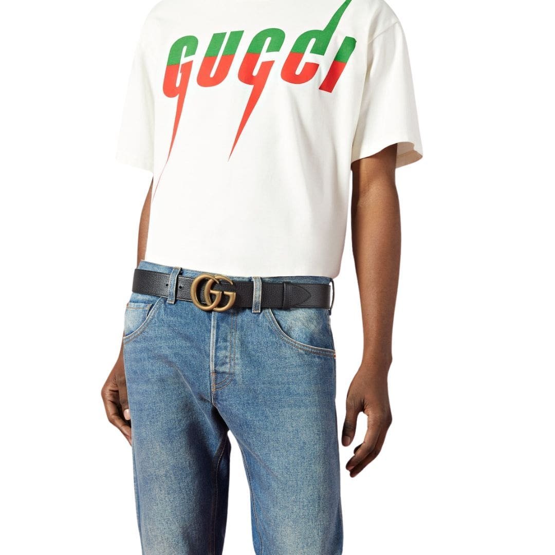 In a testament to our enduring commitment to timeless elegance and innovation, a Gucci GG Marmont Wide belt that echoes the iconic GG Marmont handbag, adorned with the signature Double G buckle. Drawing inspiration from a buckle unearthed from the ’70s archives, the gold-toned hardware undergoes a transformative process each season, reimagined in new iterations that play with the concept of timelessness.