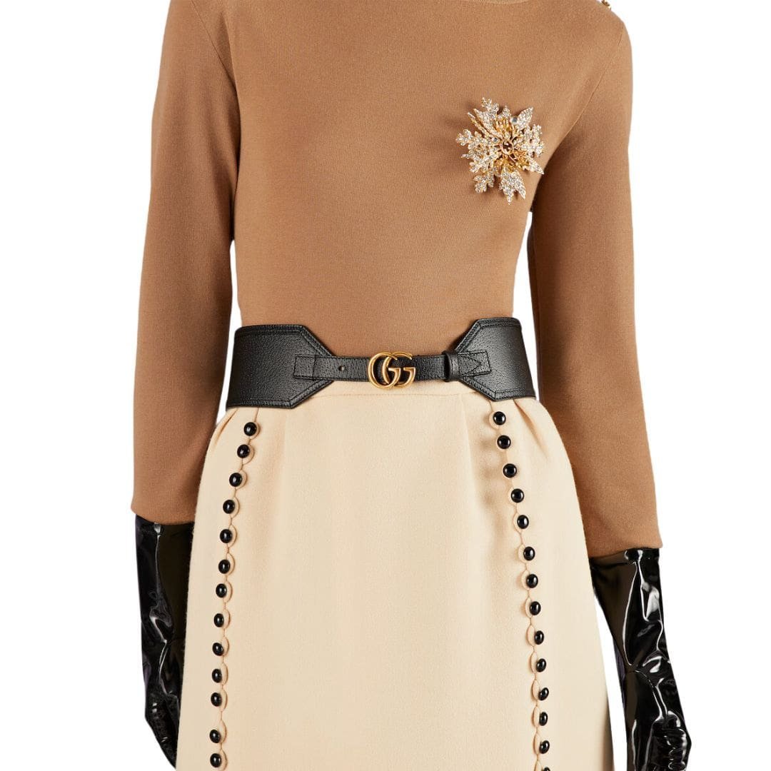 Gucci GG Marmont wide Belt At Gucci, we are committed to redefining classic designs with innovative interpretations, and the belt is a testament to this commitment. Introducing a new silhouette to the iconic GG Marmont collection, this waist-defining belt features the prominent Double G emblem at its center, adding a touch of luxury to any ensemble.