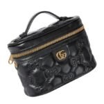 The interior of the Gucci GG Matelassé Top Handle Mini Bag is thoughtfully designed to maximize space despite its small size. It features a well-organized compartment with enough room to carry essentials such as a phone, keys, and a small wallet. The bag’s structured shape maintains its form, offering a polished silhouette that enhances any outfit, whether it’s for a formal event or a casual day out. GUCCI GG MATELASSÉ TOP HANDLE MINI BAG