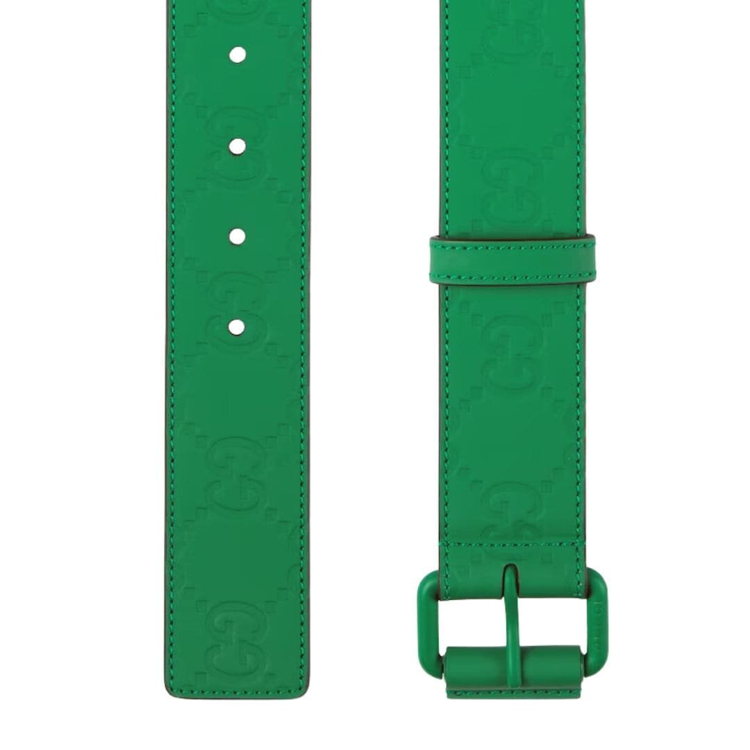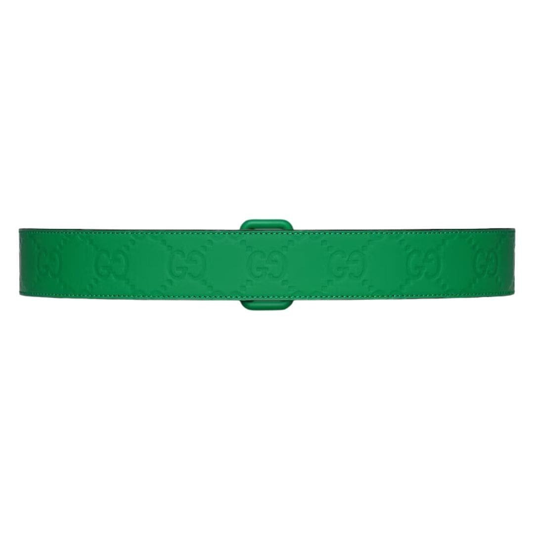 Elevate your everyday ensemble with the Gucci GG rubber-effect leather belt in green, where practicality meets luxury. Whether paired with denim for a casual look or cinching a dress for a more polished aesthetic, this accessory embodies the essence of Gucci’s commitment to timeless style and innovation.