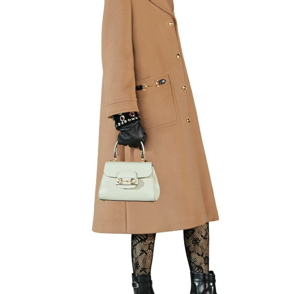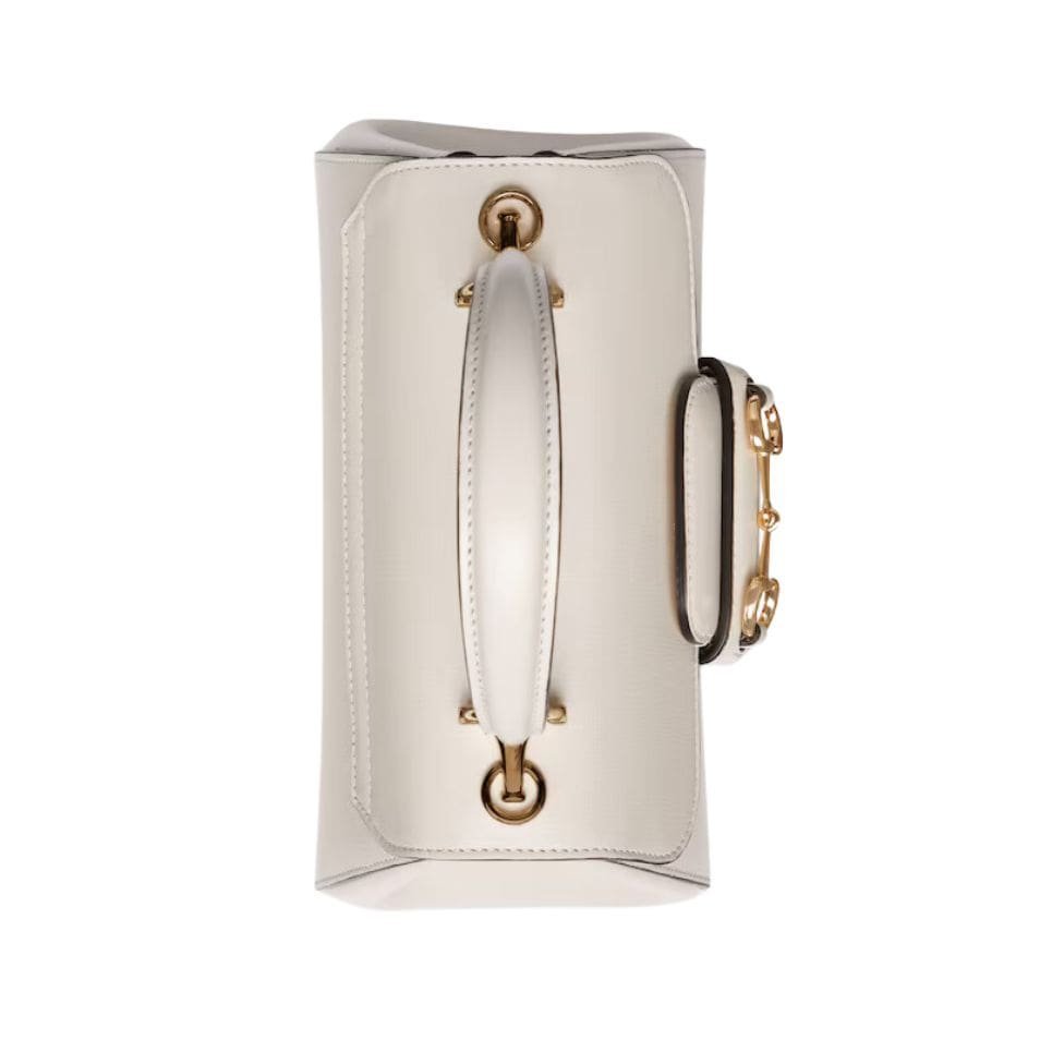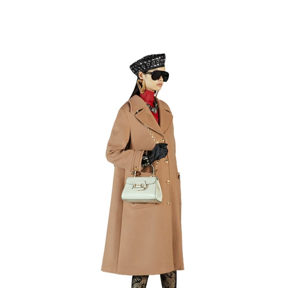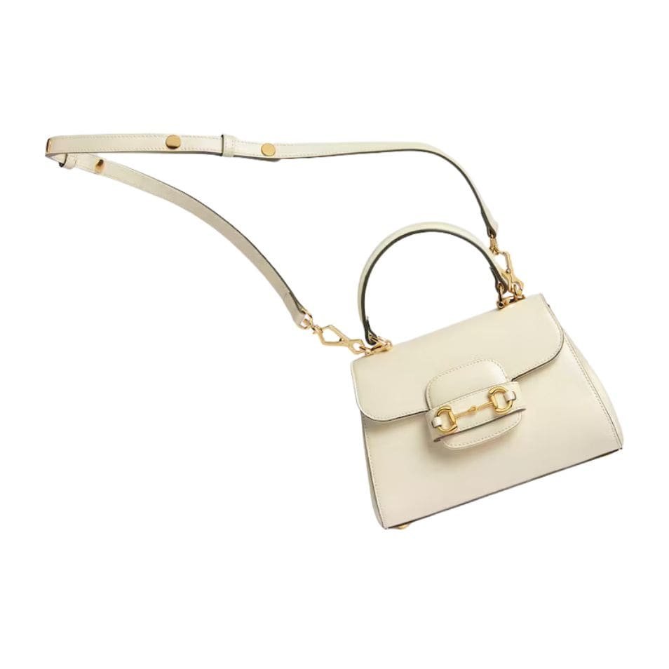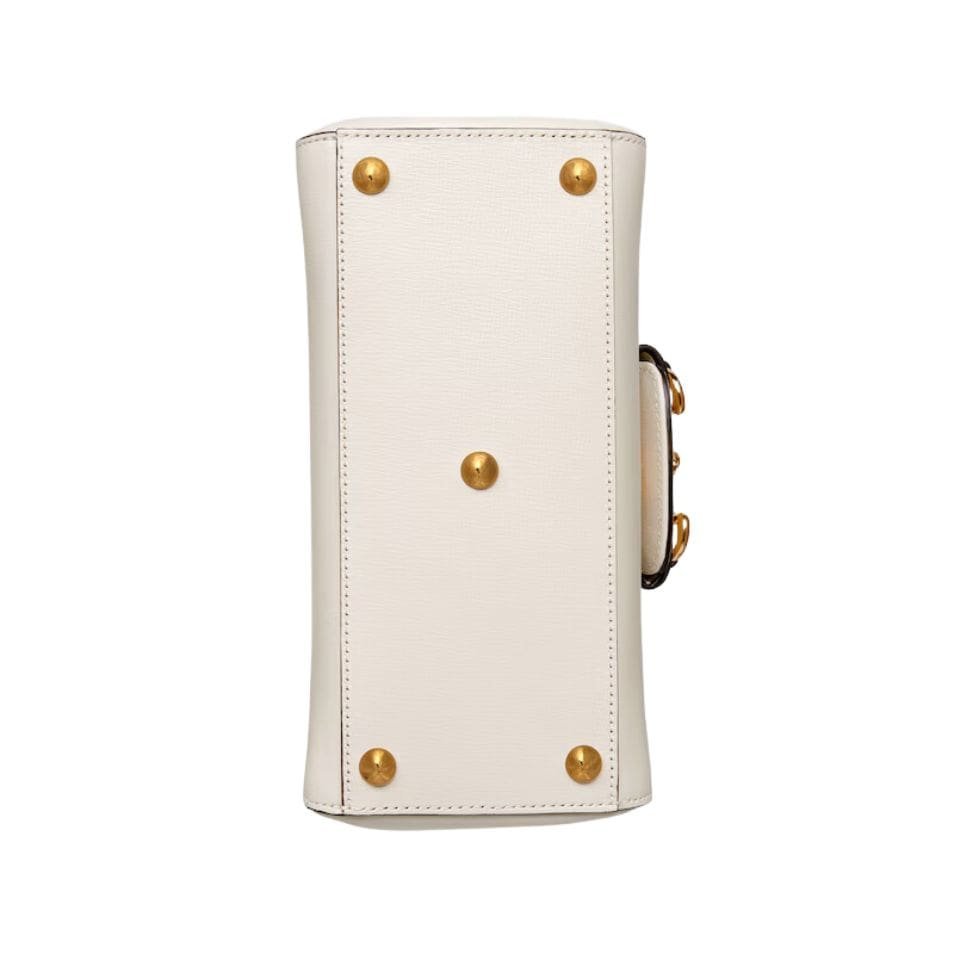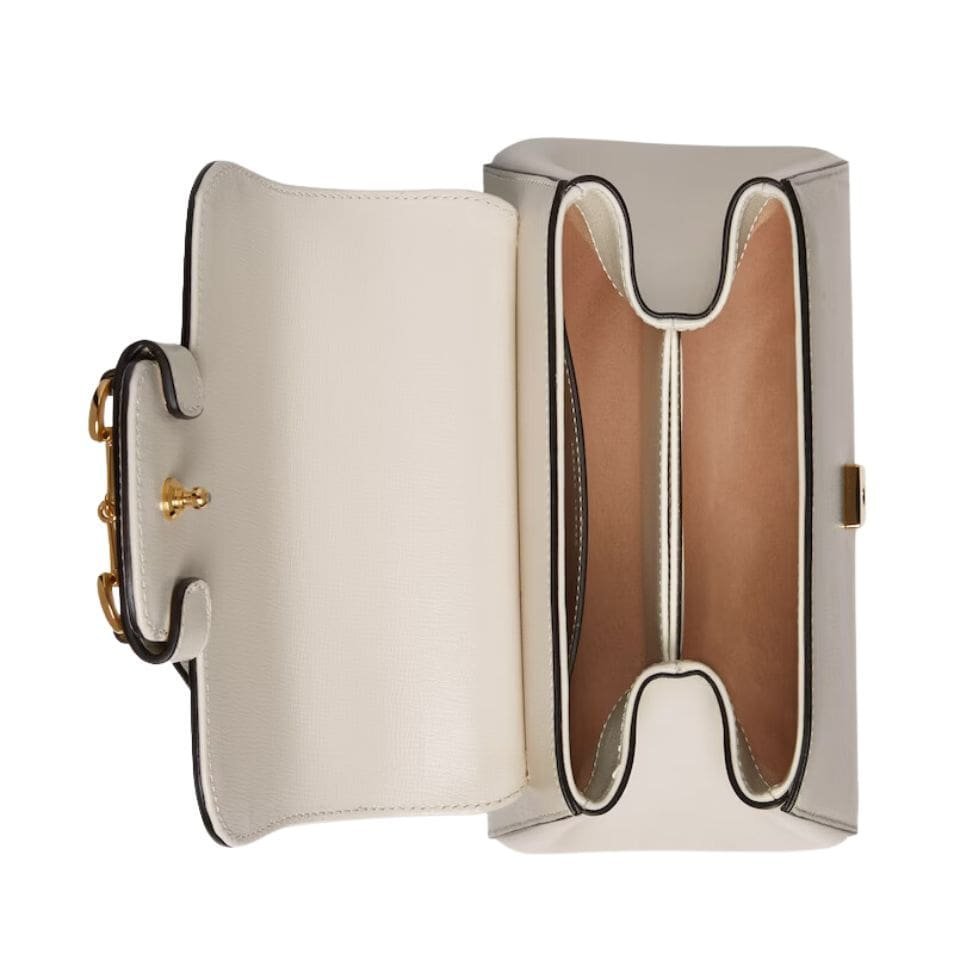 Measuring at a compact size, the Horsebit 1955 Mini Bag is perfect for those who appreciate a refined yet practical accessory. The exterior is made from high-quality leather, available in various shades, including classic black, pristine white, and rich brown, each exuding its unique charm. The leather is meticulously treated to achieve a smooth, supple finish that enhances its durability and timeless appeal. GUCCI HORSEBIT 1955 MINI BAG