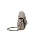 The bag features a sleek, streamlined silhouette with a flap closure, ensuring a polished and secure finish. Inside, it is surprisingly spacious for its compact size, with a well-organized interior that includes a main compartment and a small slip pocket to keep essentials neatly in place. The adjustable chain strap allows for versatile styling options—wear it over the shoulder for a classic look or crossbody for a more contemporary feel.