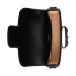 Measuring approximately 9.8 inches in width, 7.9 inches in height, and 3.1 inches in depth, the bag offers a compact yet functional size, perfect for day-to-night wear. The structured silhouette is both sophisticated and practical, with a flap closure that secures your belongings while maintaining the bag’s sleek profile. The adjustable shoulder strap, also adorned with gold-tone hardware, allows for versatile styling options, whether worn crossbody or on the shoulder.