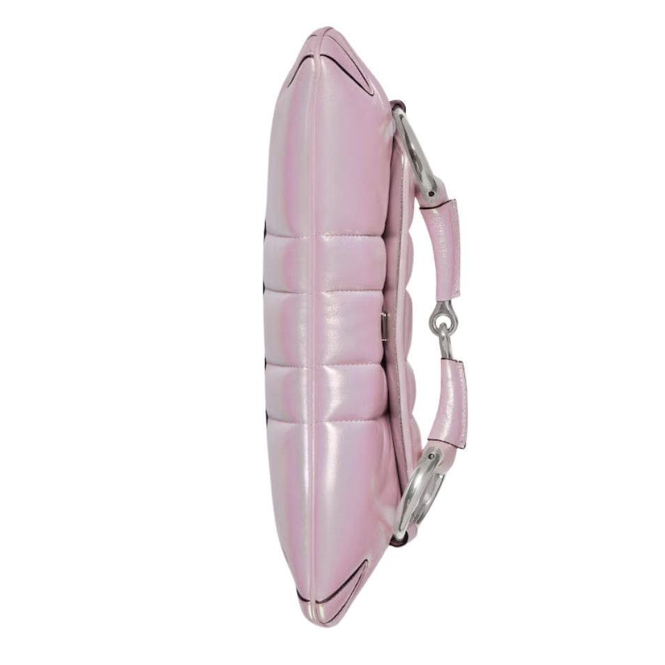 Inside, the Gucci Horsebit Chain Small Shoulder Bag offers ample space despite its compact size. The interior is thoughtfully designed with a lined compartment, providing enough room to carry essentials such as a phone, wallet, and keys. The bag closes securely with a magnetic flap, ensuring your belongings are kept safe while maintaining a sleek silhouette. GUCCI HORSEBIT CHAIN SMALL SHOULDER BAG