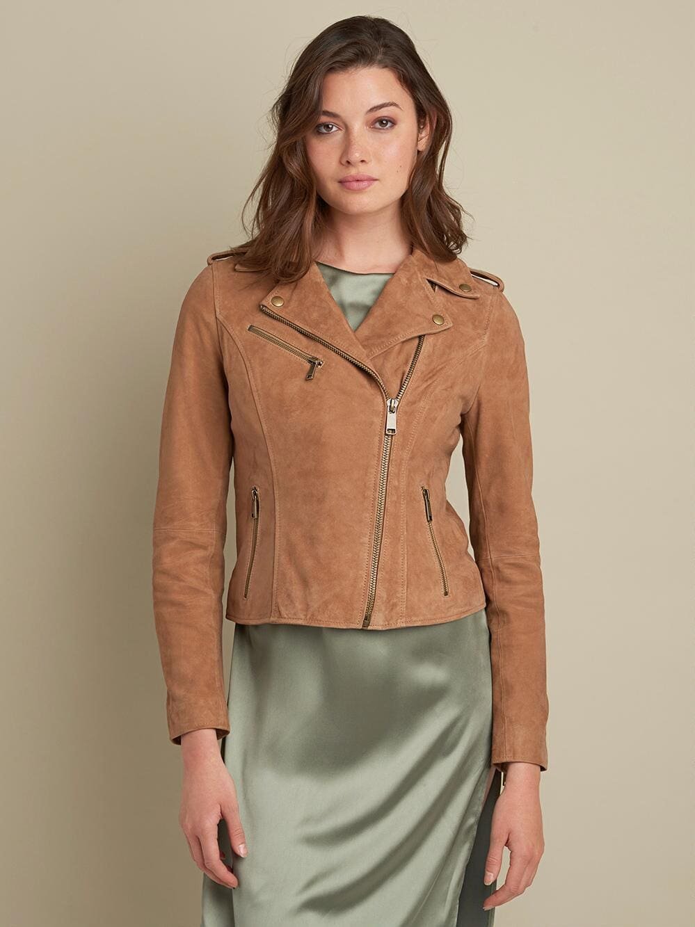 Zipper detailing and asymmetrical styling completes the cool appeal of this feather touch suede asymmetric moto jacket from Wilsons Leather. Featured with shoulder epaulettes and a notch collar, it’s easy-wearing with any jeans and a shirt outfit. All our Wilsons brand jackets are timeless basics with a comfortable fit.