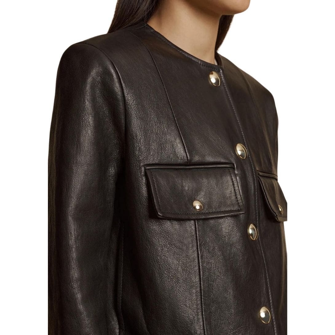 In essence, the Khaite Laybin Jacket in black leather epitomizes contemporary luxury, combining impeccable craftsmanship with timeless design. As a versatile and enduring piece, it serves as a sartorial investment that exudes sophistication and style for years to come.
