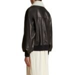 At first glance, the jacket captivates with its sleek silhouette and supple texture. Cut from the finest black leather, it drapes effortlessly over the body, accentuating the wearer’s frame with grace and allure. The leather’s rich, lustrous finish adds depth and dimension, while subtle grain patterns lend a touch of natural beauty.