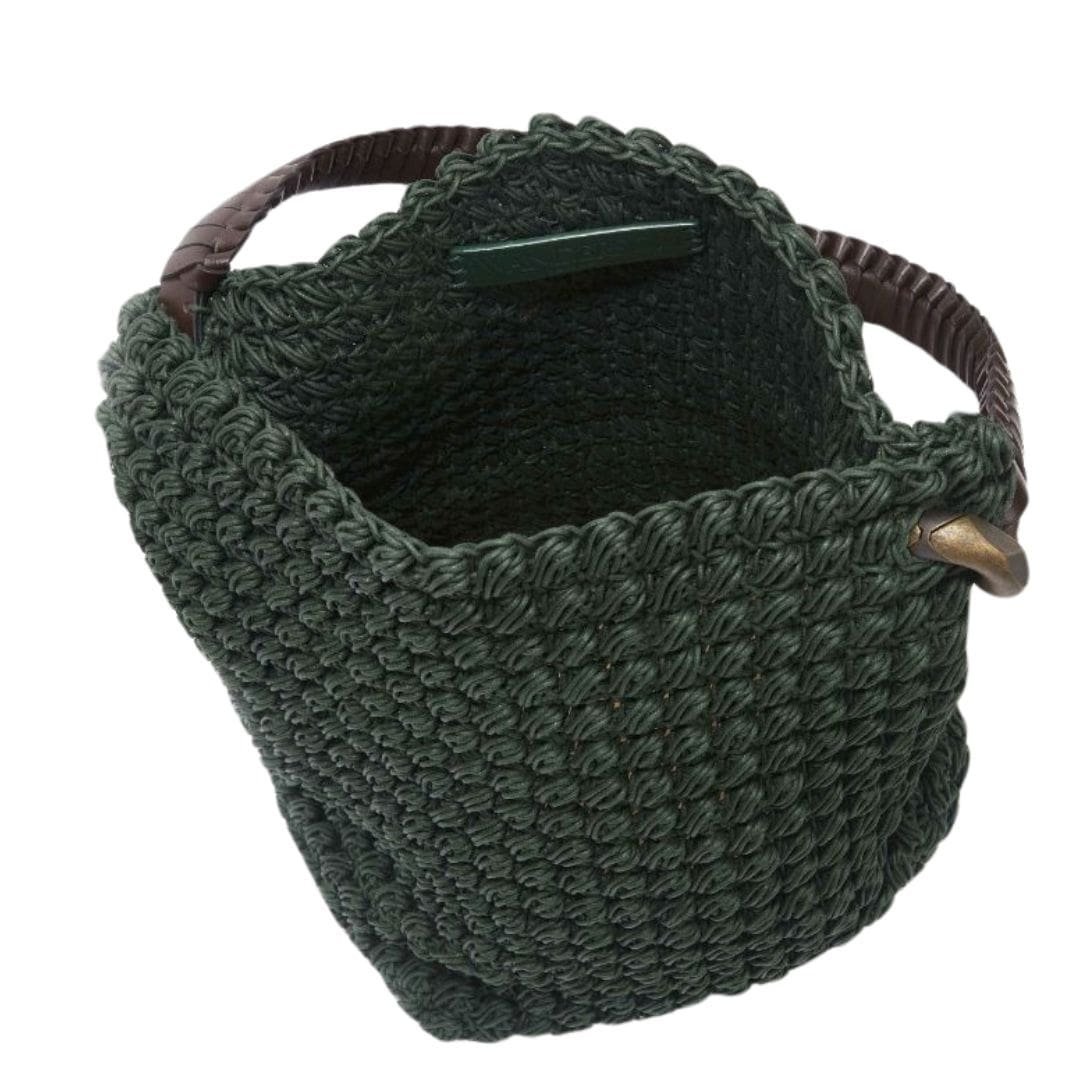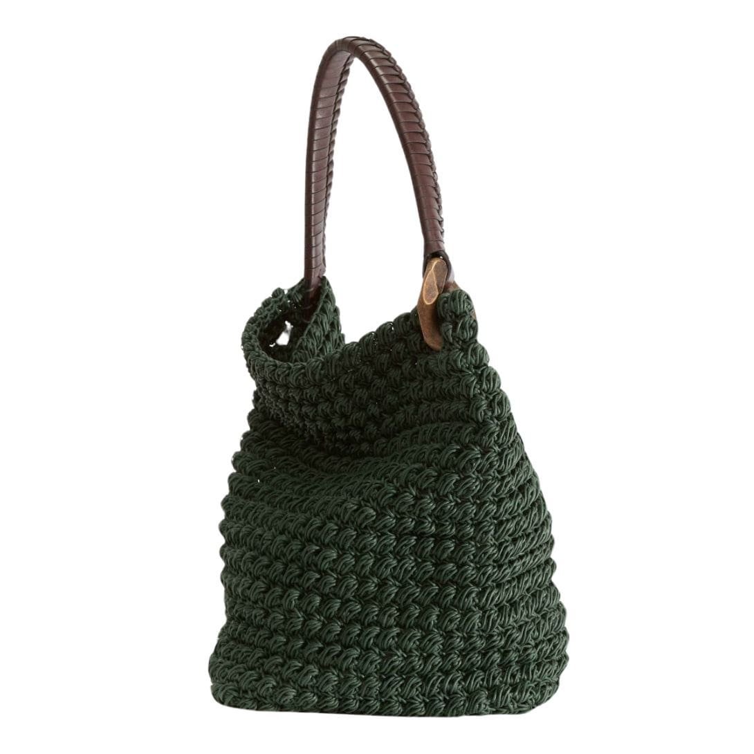 Beneath its ethereal crocheted exterior lies a sturdy leather squared base, elegantly embossed with a discreet blind logo, spanning 10cm in size. This subtle branding serves as a mark of authenticity and quality, a nod to the meticulous craftsmanship that goes into each creation.