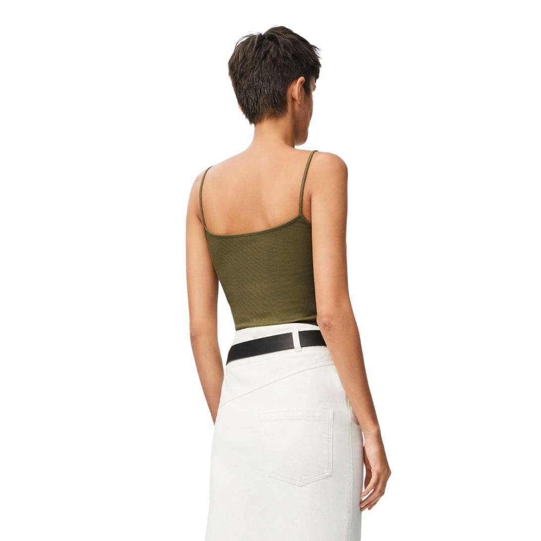 One of the highlights of this tank top is its sleek straps and the iconic Loewe Anagram detail. The straps are designed to be both supportive and stylish, enhancing the top’s minimalist aesthetic. The Anagram, a symbol of Loewe’s heritage and craftsmanship, is subtly featured, adding a touch of sophistication without overpowering the design. This detail elevates the tank top, making it suitable for both casual outings and more refined settings.