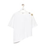 The standout feature of this t-shirt is its asymmetric design, which adds a modern twist to its classic silhouette. The asymmetrical cut creates visual interest and enhances the t-shirt’s uniqueness, setting it apart from traditional styles. This design element reflects Loewe’s commitment to innovative fashion while maintaining versatility and wearability.