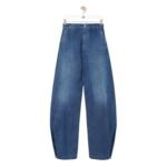 Loewe Balloon Trouser in denim délavé blue cotton reimagines classic style with a modern twist, emphasizing comfort and contemporary design. Crafted from high-quality cotton, these trousers exemplify Loewe’s dedication to premium materials and innovative fashion.
