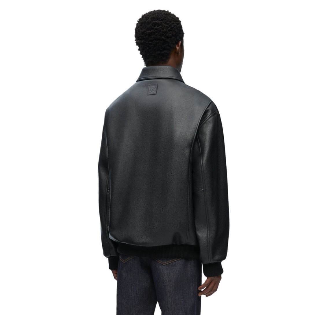 Loewe’s design for this bomber jacket blends classic elements with contemporary flair. The jacket features a sleek silhouette that maintains the traditional bomber shape while introducing subtle, modern updates. The nappa calfskin leather is treated to achieve a smooth, glossy finish that catches the light beautifully, enhancing the overall elegance of the piece. Additionally, the bomber jacket is lined with a soft fabric that provides added comfort and warmth, perfect for layering in various seasons.