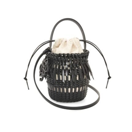 This chic accessory features a natural and tan color scheme, exuding a relaxed yet sophisticated vibe. Crafted from Loewe Bucket Bag With Drawstring In Palm Leaf And Calfskin leather, it blends organic texture with refined luxury, making it a standout piece in any collection.
