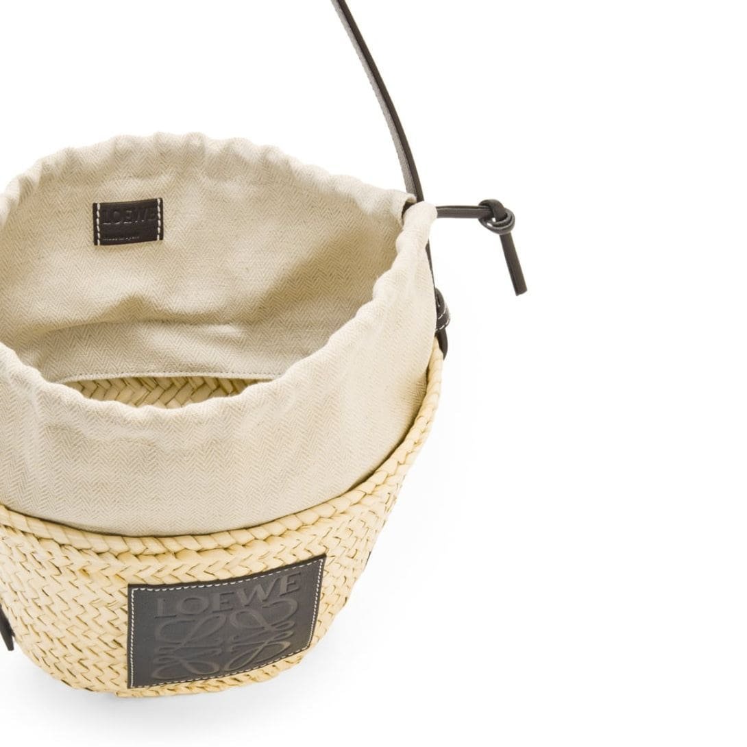 LOEWE BUCKET BAG WITH DRAWSTRING IN PALM LEAF AND CALFSKIN