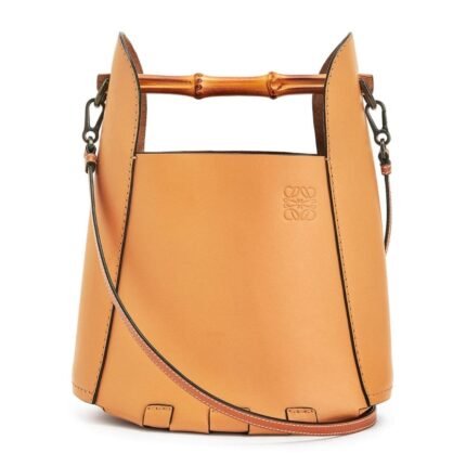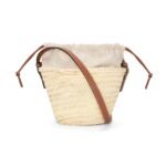 This chic accessory features a natural and tan color scheme, exuding a relaxed yet sophisticated vibe. Crafted from Loewe Bucket Bag With Drawstring In Palm Leaf And Calfskin leather, it blends organic texture with refined luxury, making it a standout piece in any collection.