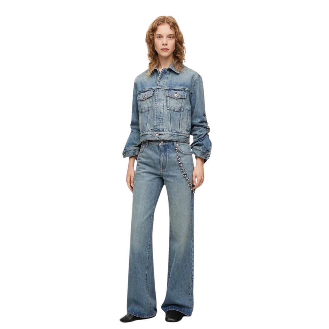 Ideal for casual outings or adding an edgy twist to everyday outfits, the LOEWE Chain Jeans in washed denim are versatile wardrobe essentials. Their versatile nature allows them to be paired effortlessly with various tops and footwear choices, adapting to different style preferences and occasions.