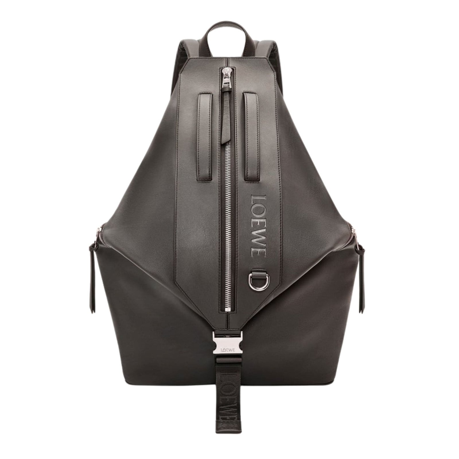 The LOEWE Convertible Backpack in Classic Calfskin embodies the epitome of sophisticated versatility and craftsmanship. Crafted from luxurious classic calfskin leather, this backpack is designed to seamlessly transition from a refined daypack to a sleek shoulder bag, catering to the needs of the modern individual.