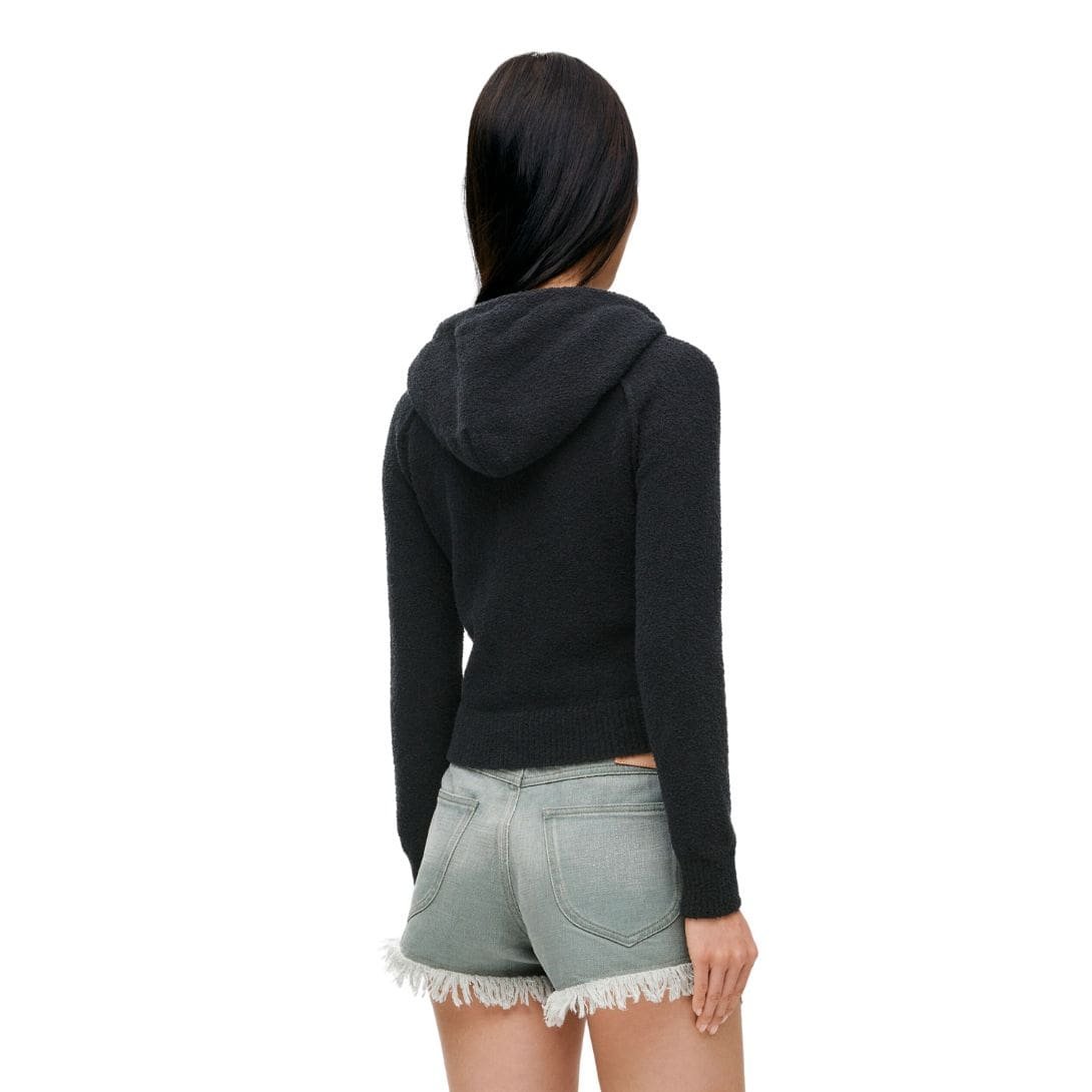 The standout feature of this piece is its hooded design, which adds a practical element while enhancing its modern aesthetic. The hood provides additional warmth and coverage when needed, making it ideal for cooler weather or layering under outerwear. It also adds a sporty touch to the sweatshirt’s overall look, perfect for creating effortless, casual outfits.