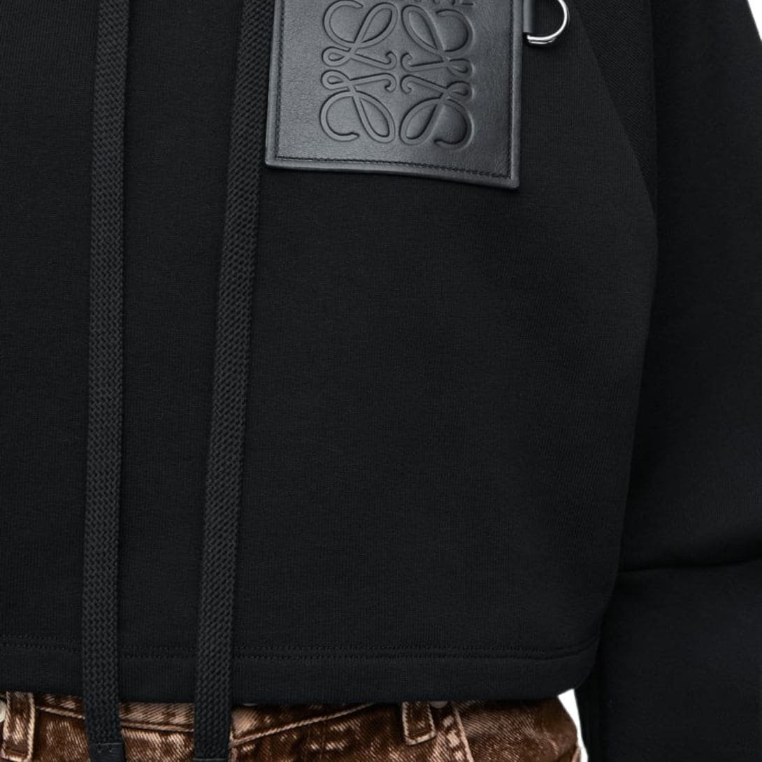 The Loewe cropped cotton hoodie is a perfect blend of modern style and comfortable functionality, crafted from high-quality cotton. This hoodie is designed to cater to those who appreciate both fashion and comfort in their everyday wear.