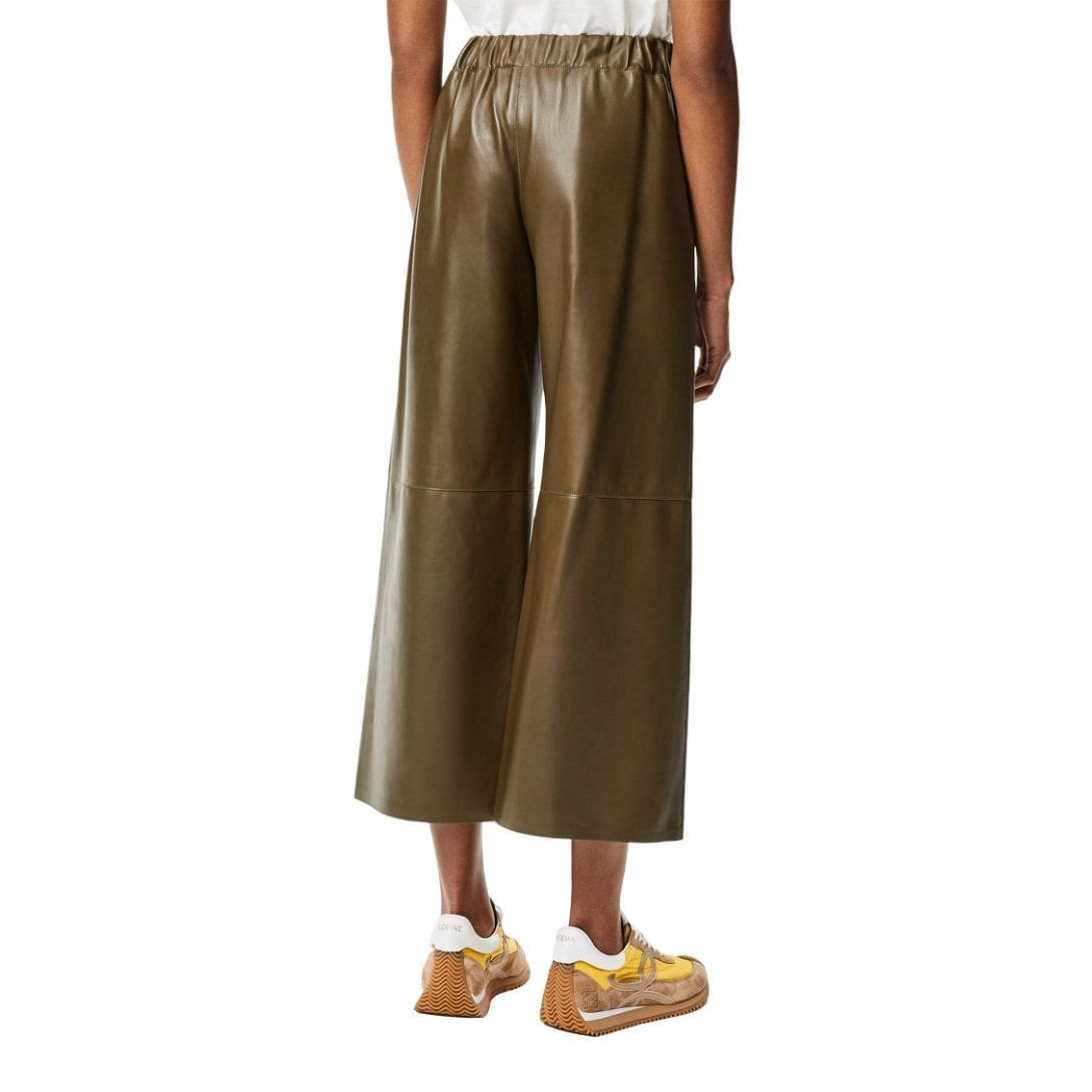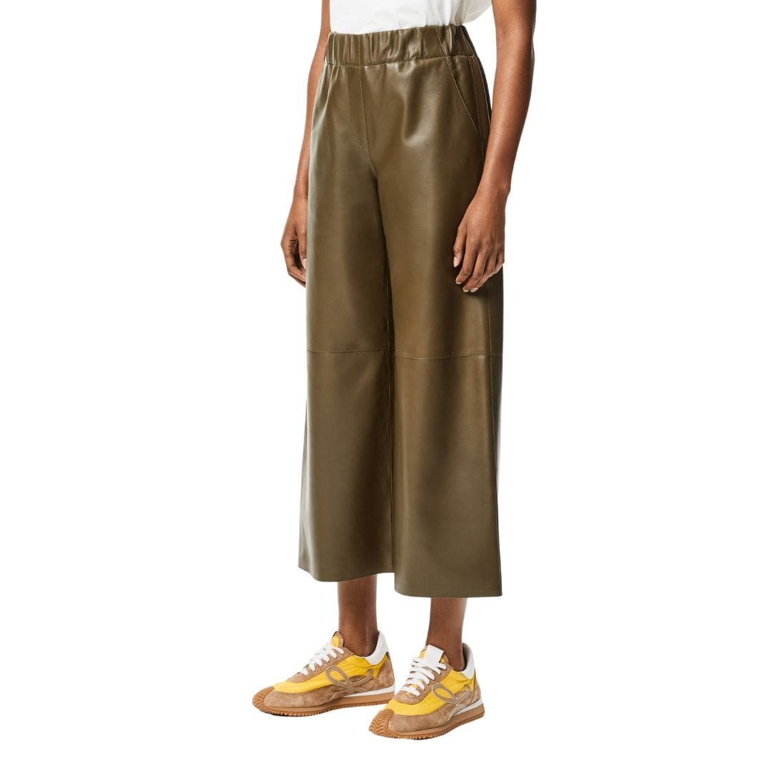 In summary, the LOEWE Cropped Trousers in Nappa lambskin leather epitomize luxury and modern sophistication. They appeal to individuals seeking a statement piece that combines comfort with timeless elegance. Ideal for enhancing any wardrobe with a touch of luxury and versatility, these trousers exemplify LOEWE’s dedication to creating fashion pieces that merge craftsmanship with contemporary style.