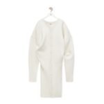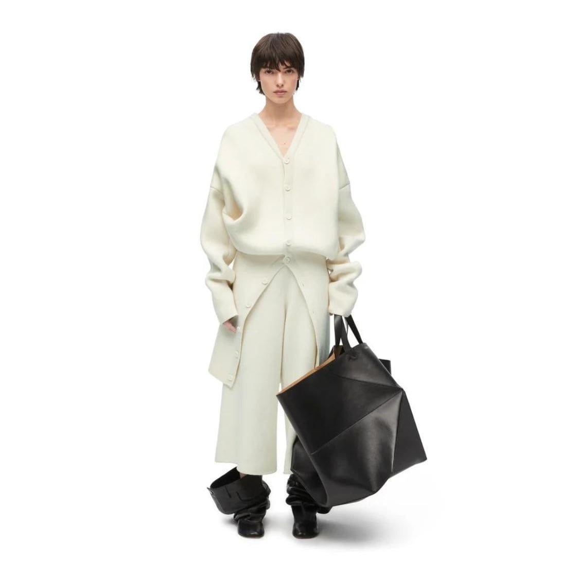 The soft white color adds a touch of refined sophistication, ensuring the coat can be effortlessly paired with various outfits. This versatile hue enhances the coat’s ability to transition seamlessly from day to night, whether worn over casual ensembles or more formal attire. The pristine shade of white also highlights the coat’s clean lines and minimalist aesthetic, reflecting Loewe’s dedication to understated luxury.