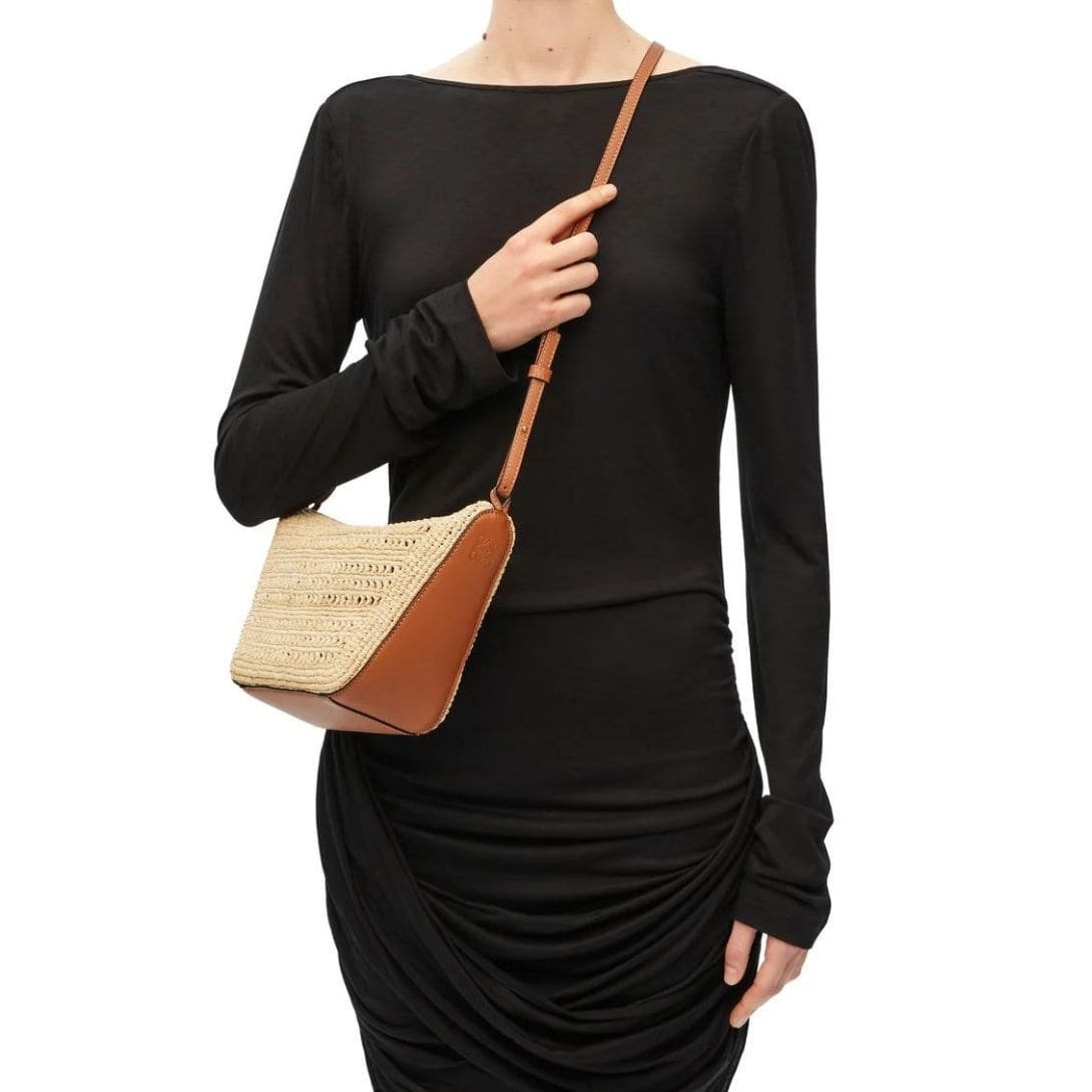 LOEWE MINI HOBO HAMMOCK BAG IN RAFFIA AND CALFSKIN