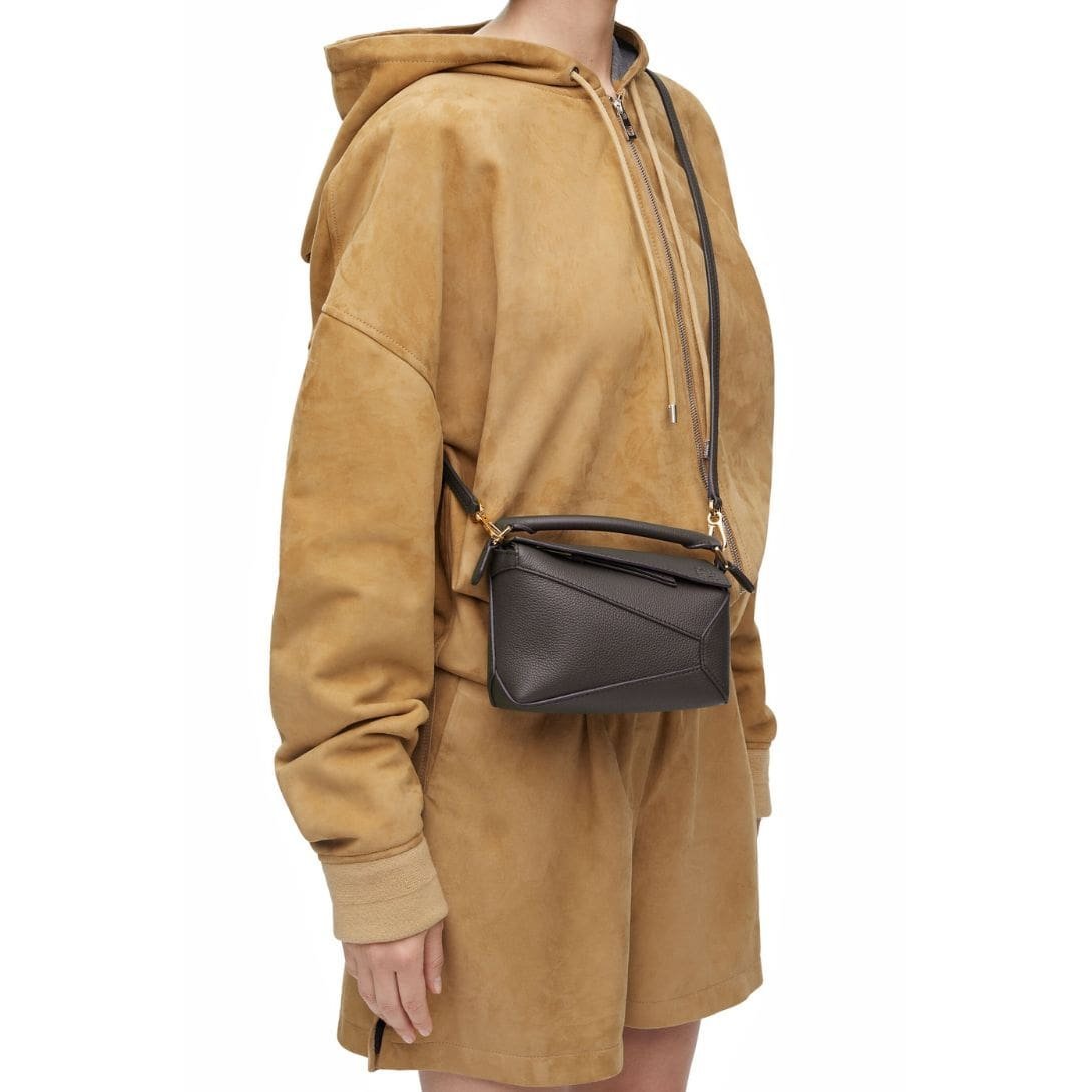 Crafted with meticulous attention to detail and using only the finest materials, the LOEWE Mini Puzzle Bag is not just an accessory, but a statement piece. Its soft grain calf leather exudes sophistication, while its versatile design offers practicality for modern lifestyles. Whether you’re strolling through city streets or attending social events, this mini bag effortlessly combines style and functionality, elevating your ensemble with its timeless allure.