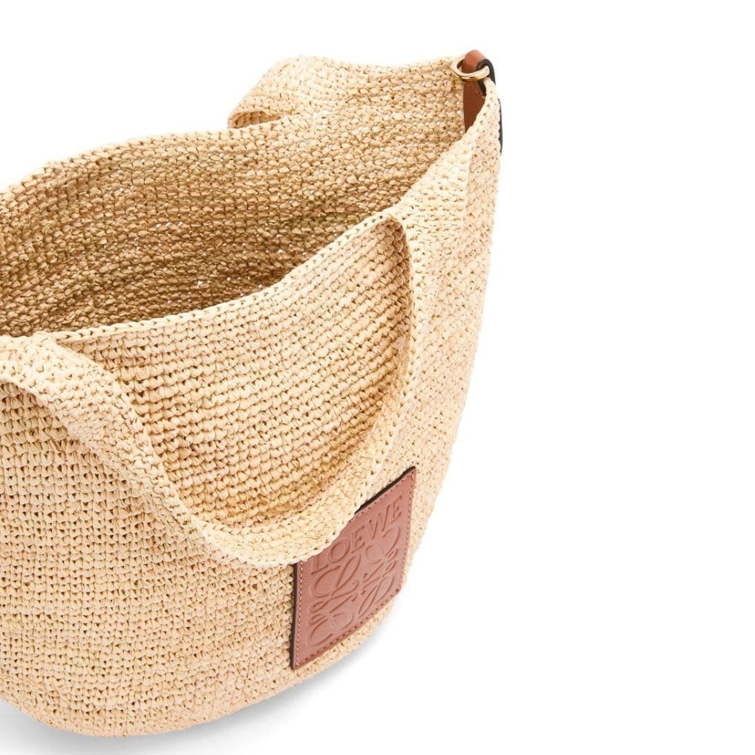 Crafted from high-quality raffia and accented with luxurious calfskin, the bag combines natural texture with refined elegance. The raffia material adds a unique, artisanal touch, while the calfskin accents enhance durability and lend a sophisticated look. This fusion of materials makes the LOEWE Mini Slit Bag a standout piece in any wardrobe.